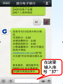2)      切换至对话模式,在微信页面输入“操作其他信用卡”所对应的序号