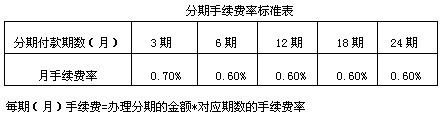 消费分期付款业务手续费率收取标准,请参照下表。